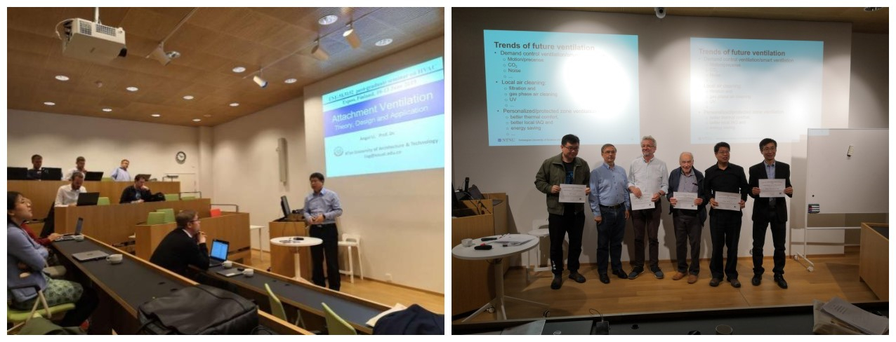李安桂教授同丹麦技术大学Arsen Melikov教授,瑞典耶夫勒大学Mats Sandberg教授,丹麦奥尔堡大学Peter Nielsen教授,芬兰阿尔托大学Risto Kosonen教授,挪威科技大学曹广宇教授一道,共同分享了他们在通风气流组织方面多年的研究成果。