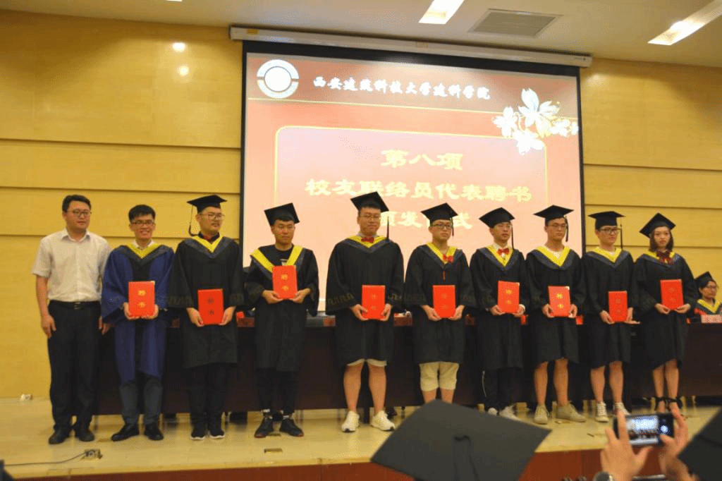 典礼的最后,党委书记于军琪老师、院长李安桂老师为毕业生送上了学院赠送的纪念礼品。校董校友会办公室主任于鹏老师为毕业生校友联络员颁发聘书和纪念品。