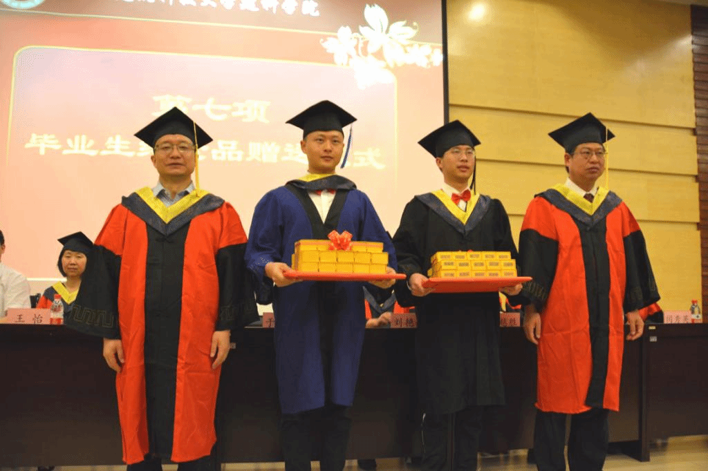 于军琪教授、李安桂教授为毕业生赠送纪念礼品