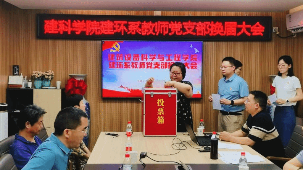 建环系教师党支部在学院312会议室召开党员大会,选举产生了新一届支部委员会委员。学院党委书记王云玲,党委副书记袁庆华参加了会议,大会由建环系党支部书记郑庆红主持。