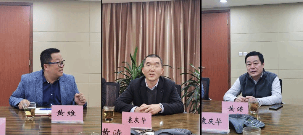 一行的到访表示了热烈欢迎。黄涛从企业概况、发展方向、科技创新、业务项目等方面进行介绍,黄维就目前公司项目所涉及的专业方向做了全方位的介绍。