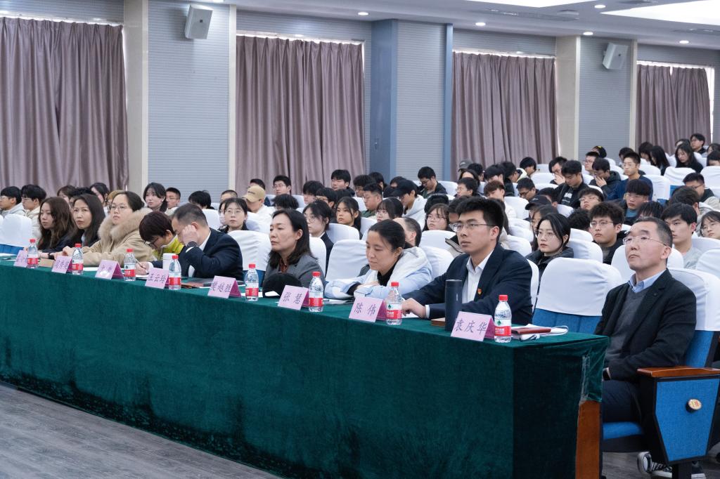 会议在庄严的国歌中拉开帷幕,学院党委书记王云玲讲话。王云玲表达了对258名新生的热烈欢迎,介绍了学校的悠久历史以及新校区的发展变化,并从学院的专业设置、人才培养、师资力量、科研成果等方面进行了详细介绍。她强调,学院的发展离不开全体师生的共同努力,希望258名新生勇于逐梦,爱校荣院,不负时代,不负韶华,并提出三点希冀:一是心怀梦想,脚踏实地;二是目标明确,规划清晰;三是适应变化,迎接挑战。