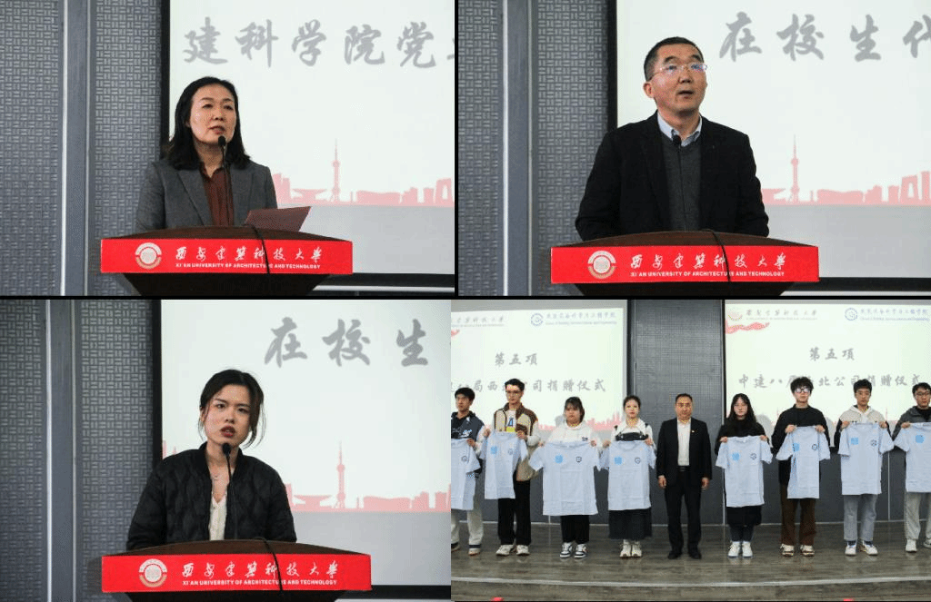 为进一步加强大学生思想政治教育,围绕“时代新人铸魂工程”,深入开展“开学第一课”教育活动,2月24日建筑设备科学与工程学院在草堂校区学府城6-301召开2022级本科新生见面会暨中建八局西北公司捐赠仪式。应邀参加会议的嘉宾有学院校企合作友好企业中国建筑第八工程局有限公司西北公司安装分公司党总支副书记、执行总经理、学院第一届职业导师文哲先生,施工管理部部门经理、学院建环专业2016届校友陈伟先生,综合办公室招聘经理刘小燕女士、张璇梓女士。学院党委书记王云玲、建环系主任樊越胜、智能建筑系主任闫秀英、副主任张慧、本科教学秘书孟令嫒、学生工作办公室主任朱海琦、热工流力教师、建环2204班班主任董馨、2022级兼职辅导员李佳润、钱博出席会议。本次会议由学院党委副书记、副院长袁庆华主持。