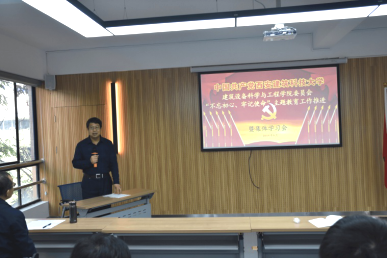 “不忘初心,牢记使命”主题教育党课第一讲,分别从提出背景、重要意义、总要求、根本任务、具体目标、学校党委和学院党委的安排部署七个方面认真解读了本次主题教育活动详细内容,希望全体党员能够不断加强政治理论学习,切实提高政治站位,把“守初心、担使命,找差距、抓落实”的总要求贯穿始终。并从提高政治站位、党员领导干部带头学、发挥党支部战斗堡垒作用、主题教育与学校与学院中心工作结合四个方面对学院本次工作提出具体要求。