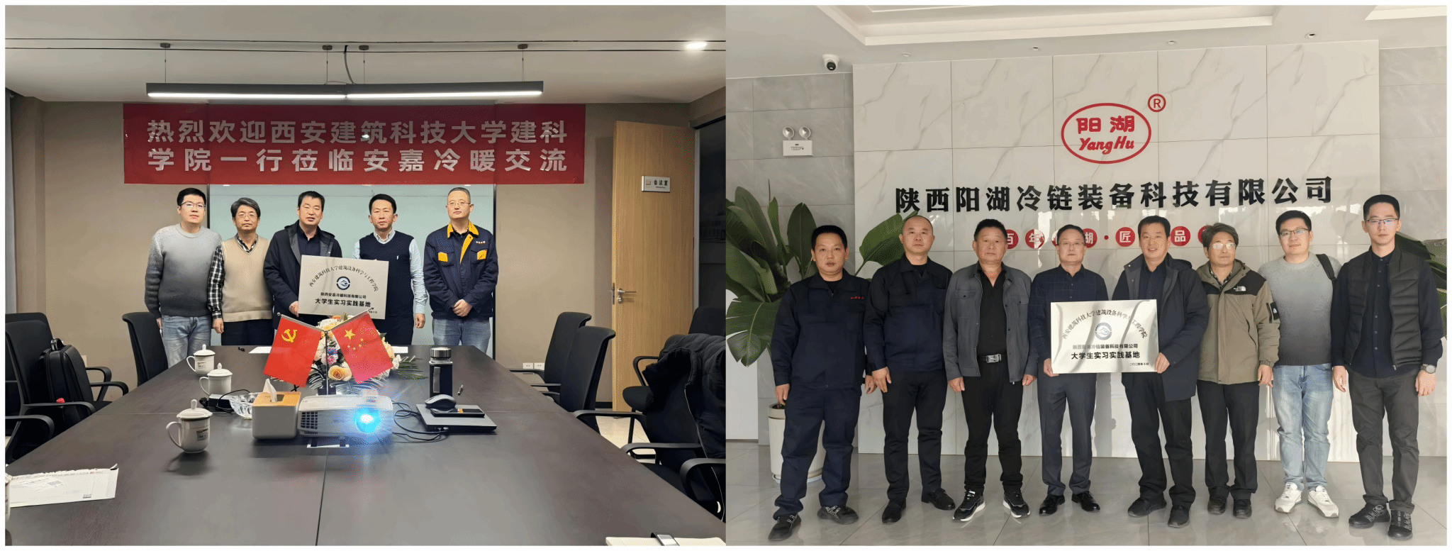 副院长冯增喜、建环系副主任杨洋、教师代表党义荣、教学干事康瀚文一行四人分别赴陕西阳湖冷链装备科技有限公司、陕西安嘉冷暖科技有限公司开展实习实践基地签约和揭牌仪式。陕西阳湖冷链装备科技有限公司负责人秦峰、行政主管薛维美、陕西安嘉冷暖科技有限公司负责人安健等相关领导参加此次签约仪式和交流。