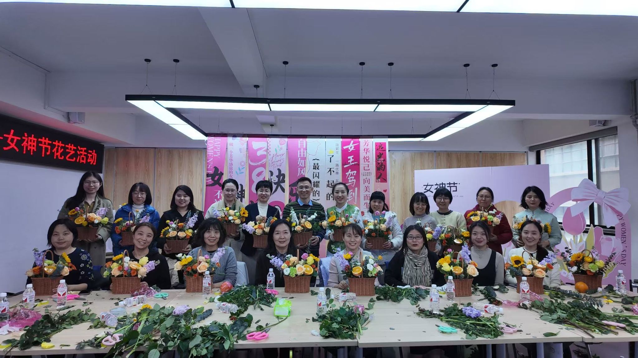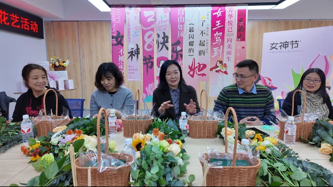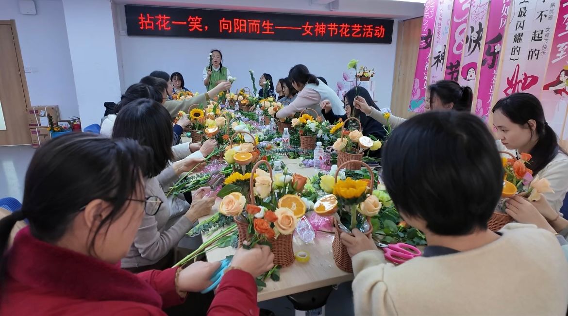 以一场别开生面的花艺盛宴庆祝第115个"三八"国际劳动妇女节。学院分工会精心策划的"拈花一笑,向阳而生"主题插花活动在学院409A举办,全院30余名女教师齐聚一堂,在专业花艺师的指导下创作出独具匠心的插花作品,以艺术创作方式共度美好节日。活动由学院分工会主席叶磊主持。