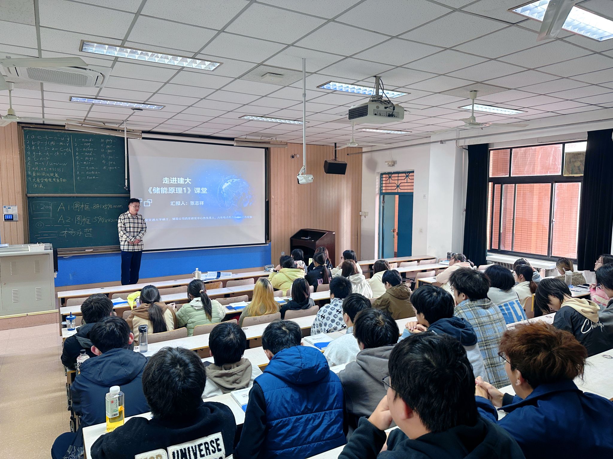 邀请4位储能科学与工程领域行业专家走进课堂,为储能科学与工程专业的同学们开展专题授课。4位专家分别是西安翱翔机电科技有限公司总经理刘昌法高级工程师、西安热工研究院有限公司贾明祥工程师、锦浪科技股份有限公司张志祥工程师及百度BDDWD IDC数据中心高级系统工程师辛工,授课内容包括空气源热泵系统、储能技术原理与工程应用、储能系统热设计与工程实践、数据中心热管理技术等。专家们结合丰富的项目经验与先进案例进行了详细而生动讲解,并为同学们未来的职业发展提供了宝贵的指导。