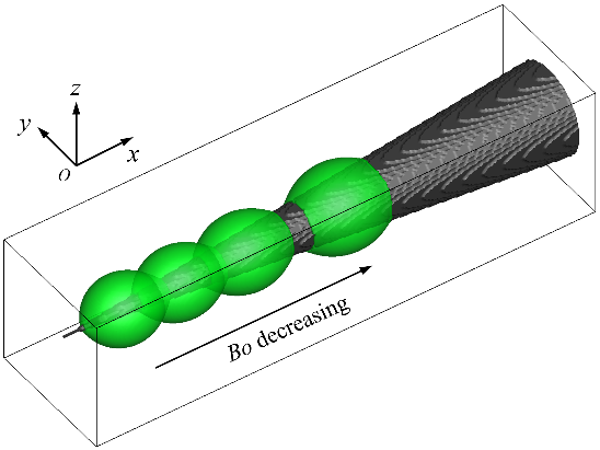 图3. Bond数对液滴稳态形状和位置的影响