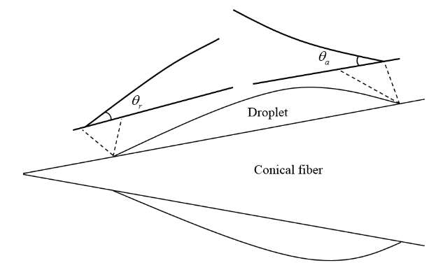 图2. 液滴在锥形表面自发输运示意图