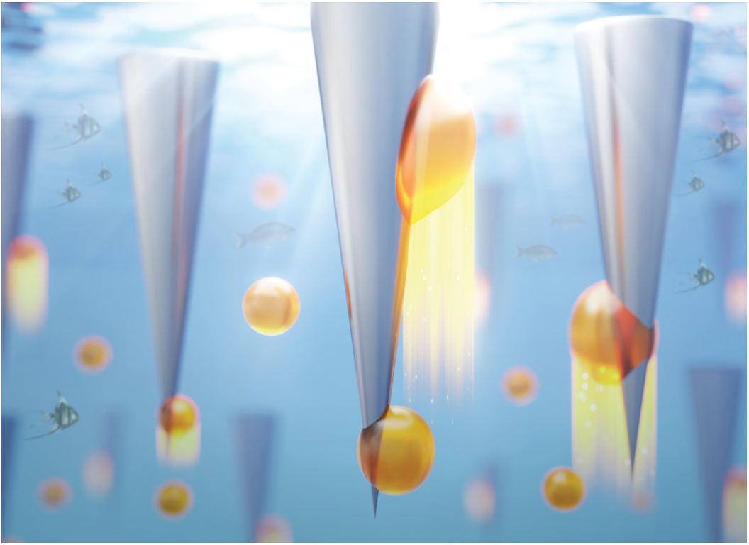 图1. 液滴在锥结构表面自发输运(引自: Softer Matter, 2022, 18: 9172-9180)