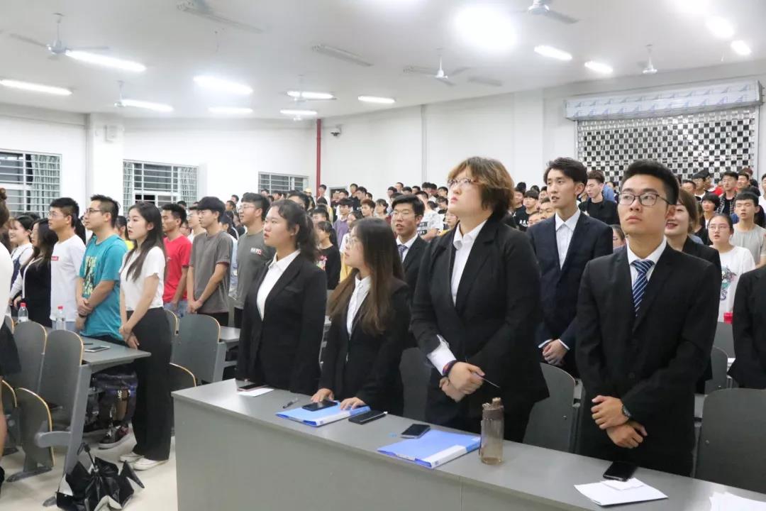 团委副书记、研究生及2017级本科生辅导员王韶笛,2016、2018级本科生辅导员朱海琦,2019级本科生辅导员李芸博以及2017届团总支学生会主要干部。大会在庄严肃穆的共青团团歌中正式开始。