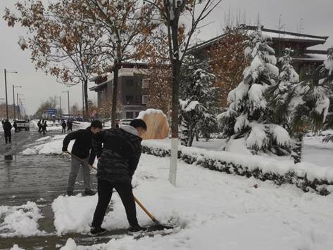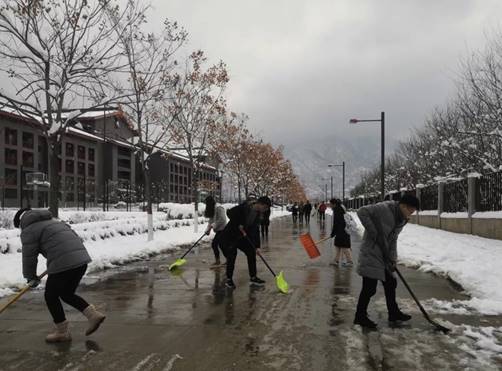 此项扫雪除冰行动长达两小时。青年志愿者服务队的同学们全身心的投入到扫雪防冻“攻坚战”中,他们不畏严寒,积极扫雪,虽然疲惫写满了粗糙的脸庞,汗水和雪水浸湿了全身,但是他们仍然用实际行动展示建科学子踏实、务实的本色,把责任落实到了实处,为创造一个更加和谐美好的校园贡献了自己的力量。
