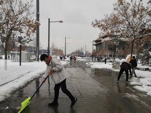 青年志愿者服务队于12月28日下午积极行动起来,开展扫雪行动,清扫世纪大道等公共场所内的积雪,美化校园,方便出行,从扫雪这件小事做起,传递正能量。