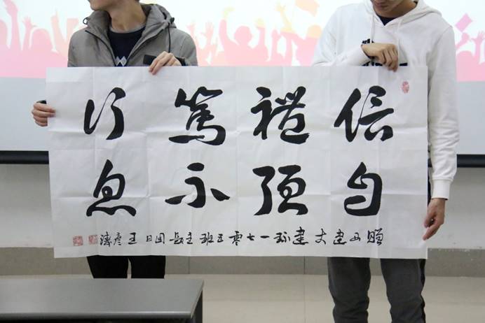 在现场提问环节,王天丹博士针对同学提出的如何传承优良家风、对于加强家风建设的建议及陕西人特有家风的特点等问题作以了详尽回答,并赠与相关书籍来砥砺学生不断学习,不断奋斗。随后他将其好友,陕西省作家协会会员、陕西省书法家协会会员、著名书法家王彦涛题写的书法作品赠与桃子视频