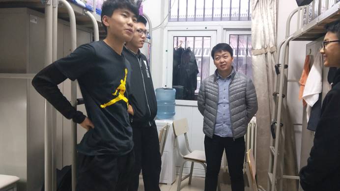 2017级本科生辅导员王翼杰、2018级本科生辅导员朱海琦以及部分班委参与了本次安全卫生检查。