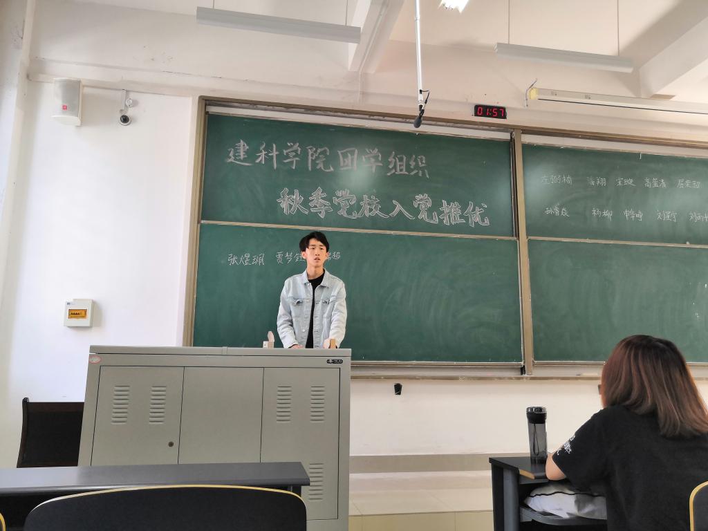 首先由团总支组织部部长及各班团支书向大家宣布会议流程以及入党流程,并强调此次入党推优的严肃性,投票需公平公正,同时交代了入选为入党积极分子的详细条件。