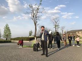 2018级辅导员朱海琦老师于4月3日观看并指导了同学们的练习。