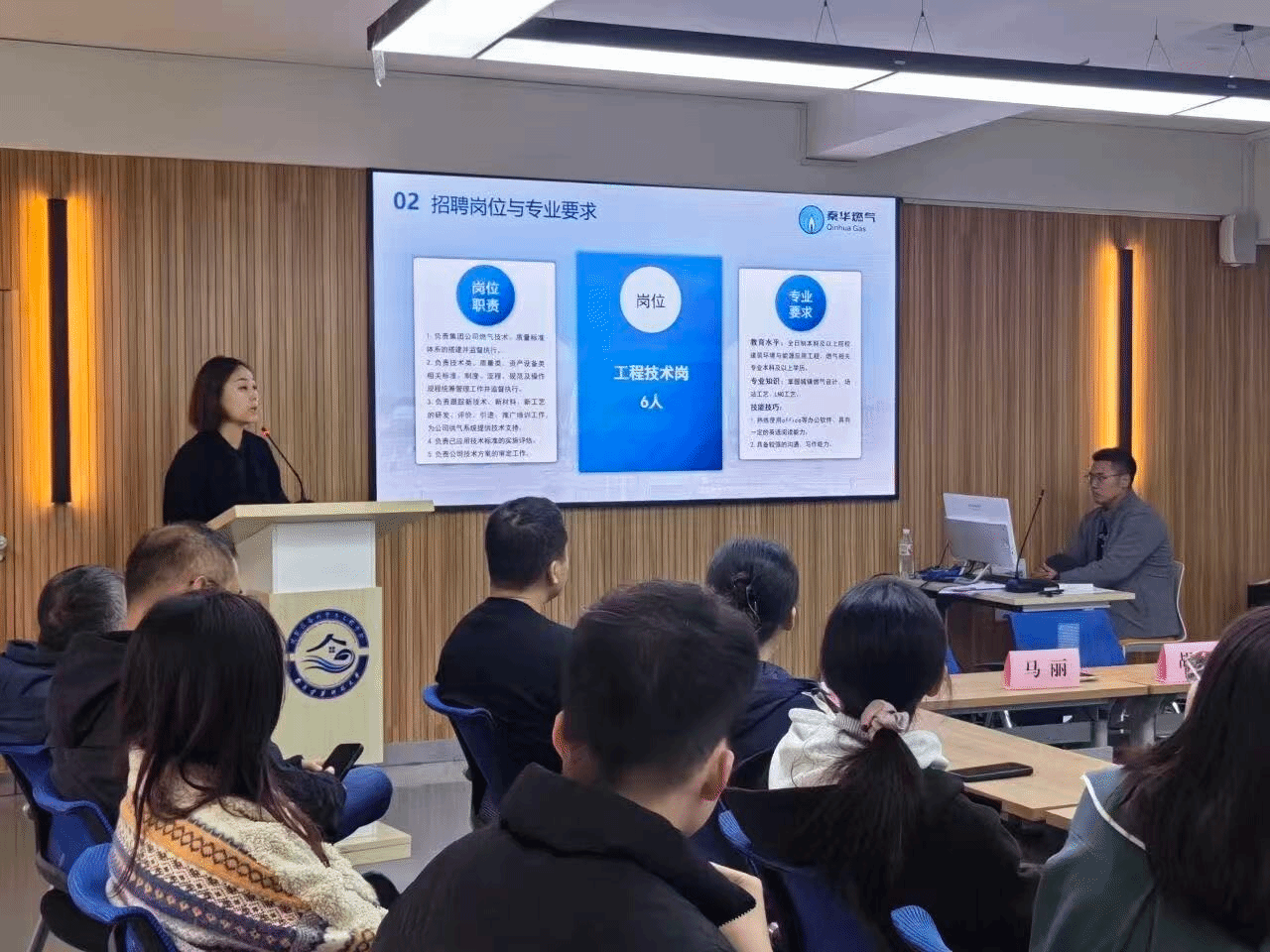 409A会议室开展燃气行业发展“校友经验分享会”。企业方详细介绍了公司的发展历程、业务领域和人才培养体系,并就2026届毕业生的招聘计划和岗位需求进行说明。在互动交流中,企业代表对毕业生关心的职业发展路径、薪酬待遇、培训体系等问题给予了细致的解答。